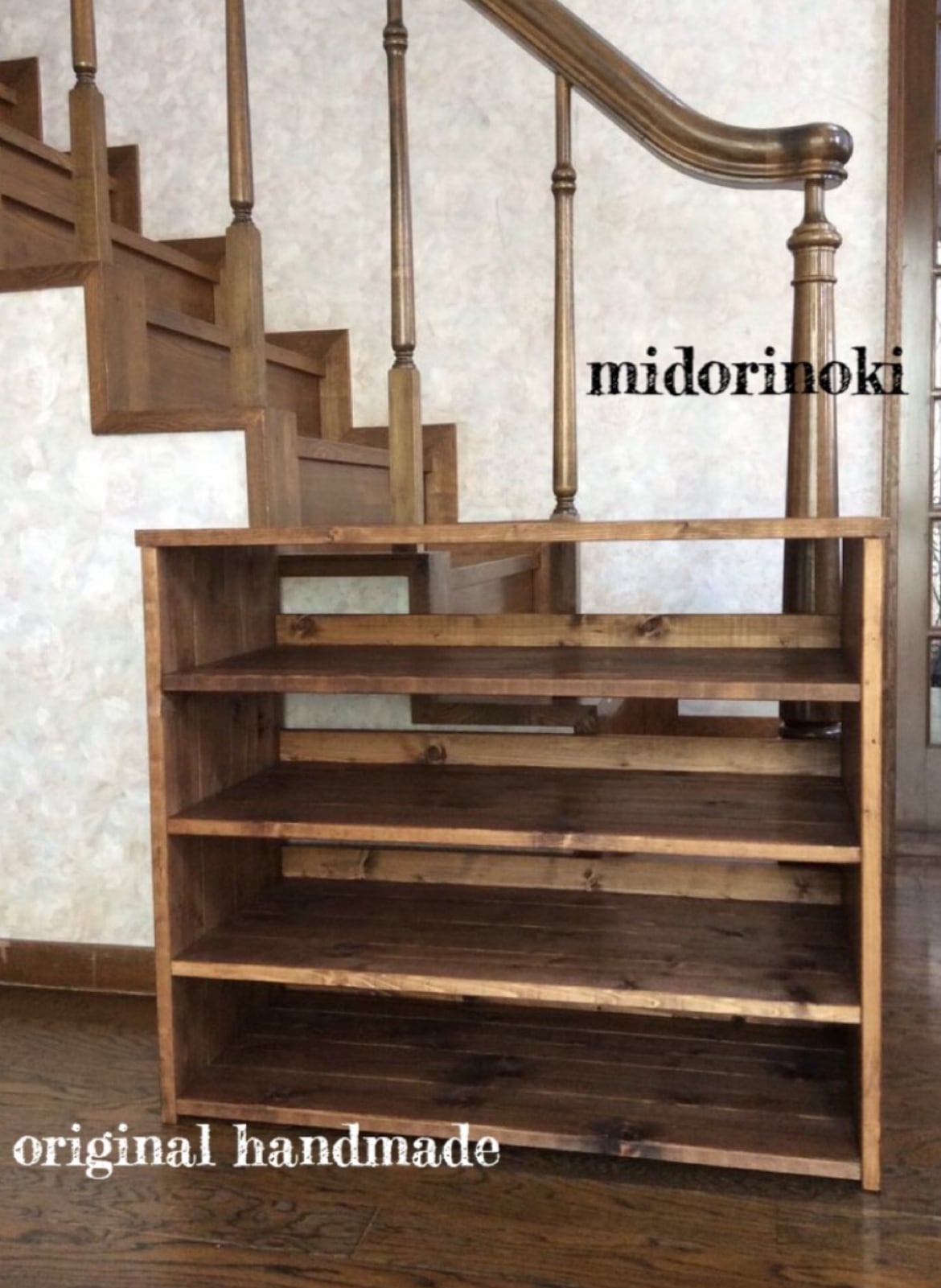 ハンドメイド家具48 濃いブラウンの4段下駄箱