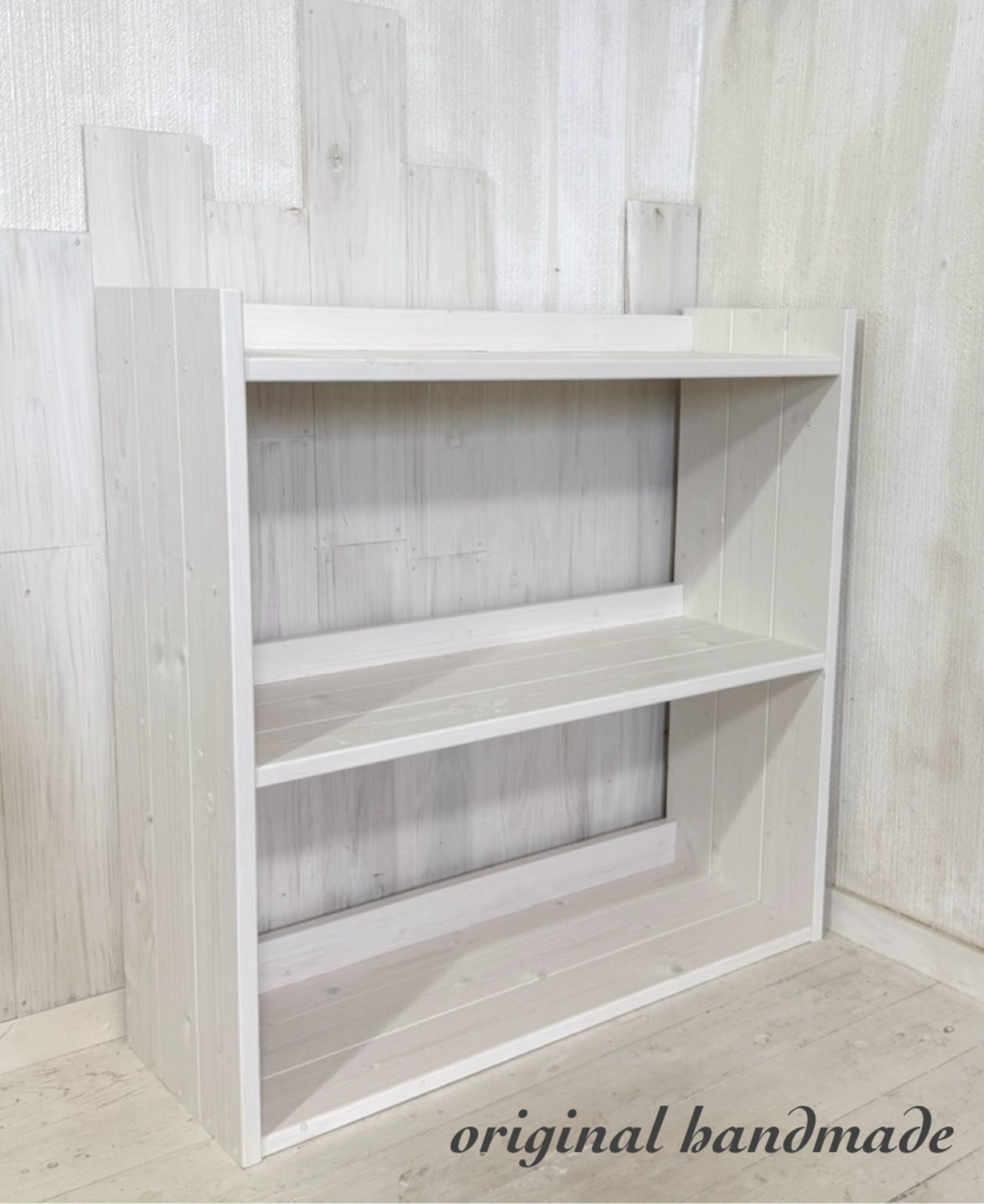 ハンドメイド家具170 ホワイトの天板なし3段シェルフ オーダー製作可
